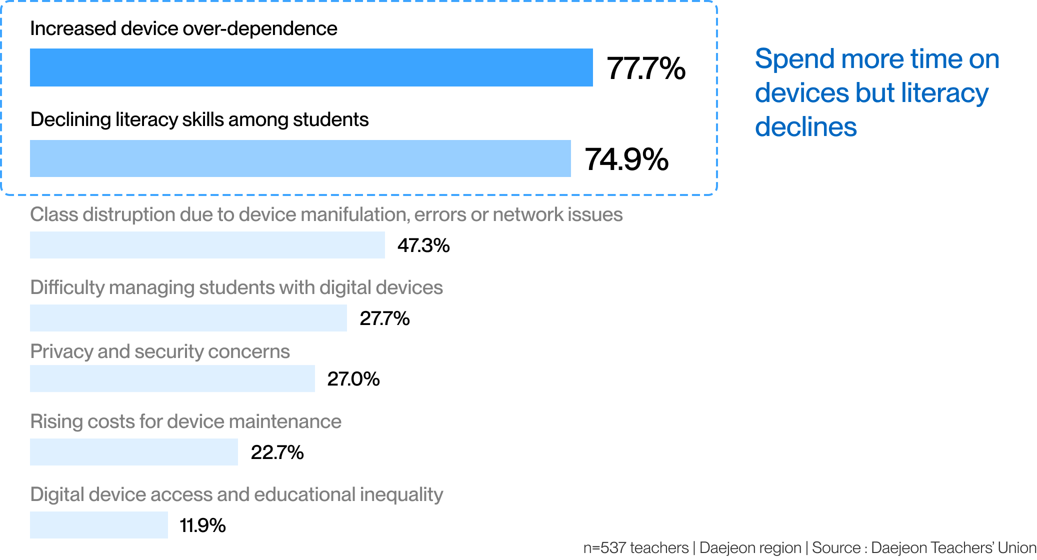 As digital textbooks become more common in classrooms, teachers raise concerns about learning effectiveness, literacy development, and the limits of screen-based instruction. Survey results and interview excerpts below reflect how educators experience these changes in practice.