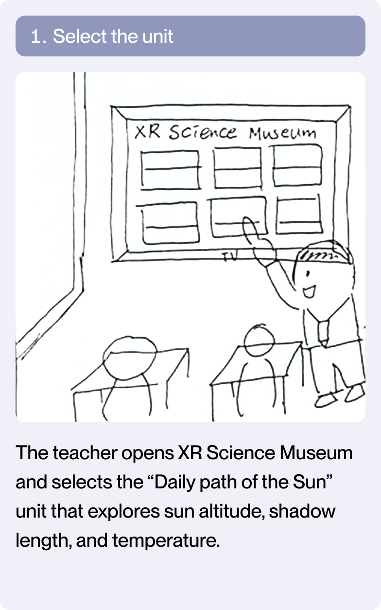 By analyzing recurring patterns across curriculum-based experiments, I translated diverse science content into four reusable XR interaction templates—creating a scalable system that supports inquiry, comparison, and observation across grade levels.