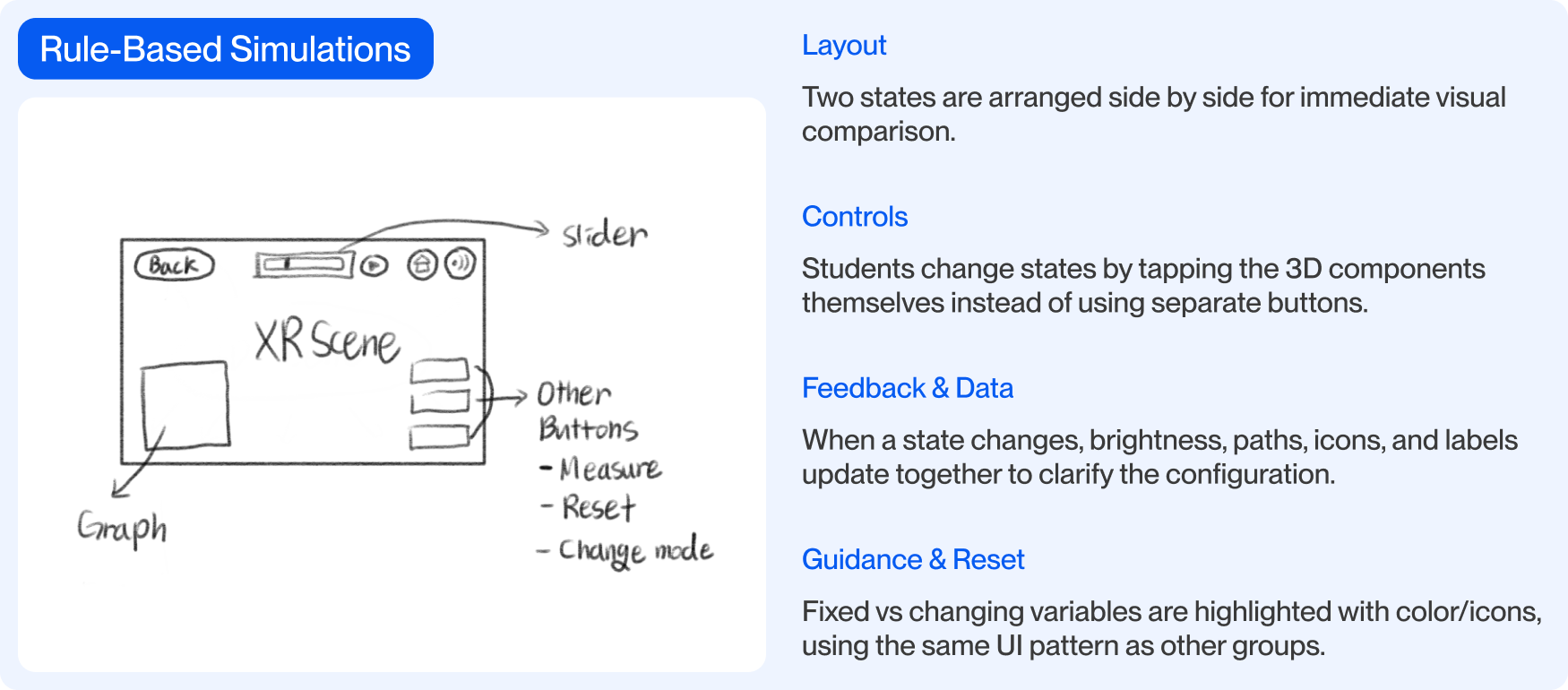 Each category informed a consistent XR layout and simulation logic.