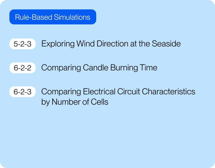 State-change type of simulations let students directly manipulate components to compare discrete conditions side by side. By toggling elements such as switches, batteries, or bulbs, students can observe immediate cause-and-effect relationships between system states.